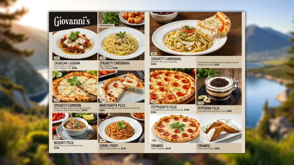 When you first look at Giovanni’s menu, you’ll see a lot of choices that might make it hard to pick just one. There are soft breads, creamy sauces, crispy pizzas, and sweet desserts waiting for you. The menu is also easy to understand, so you don’t have to feel confused when ordering. Many people say Giovanni’s menu is like a mini trip to Italy without leaving town! They serve food that’s both classic and fun, like spaghetti with meatballs or chicken with rich tomato sauce. Plus, the prices are fair, and the food comes in big portions. It’s also a nice place to go with your family or friends. If you are looking for good food, good time, and good memories, Giovanni’s menu is a great place to start. So, let’s explore all the tasty treasures it has to offer!